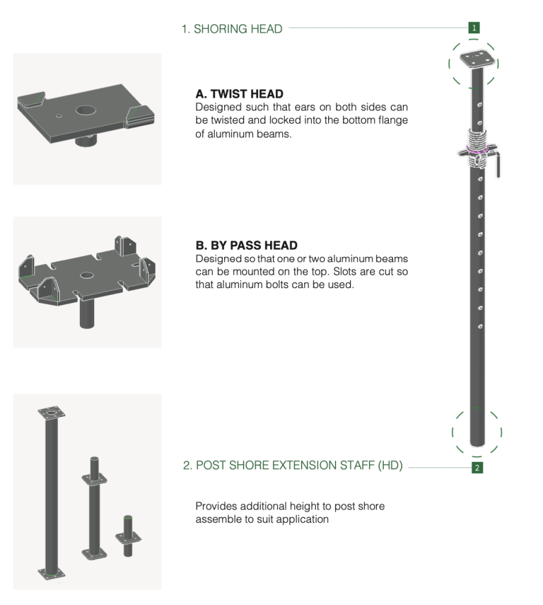 Comes in various sizes. Minimum height = 1.5m Maximum heigh = 5.5m; Can extend up to 6m using extension shores