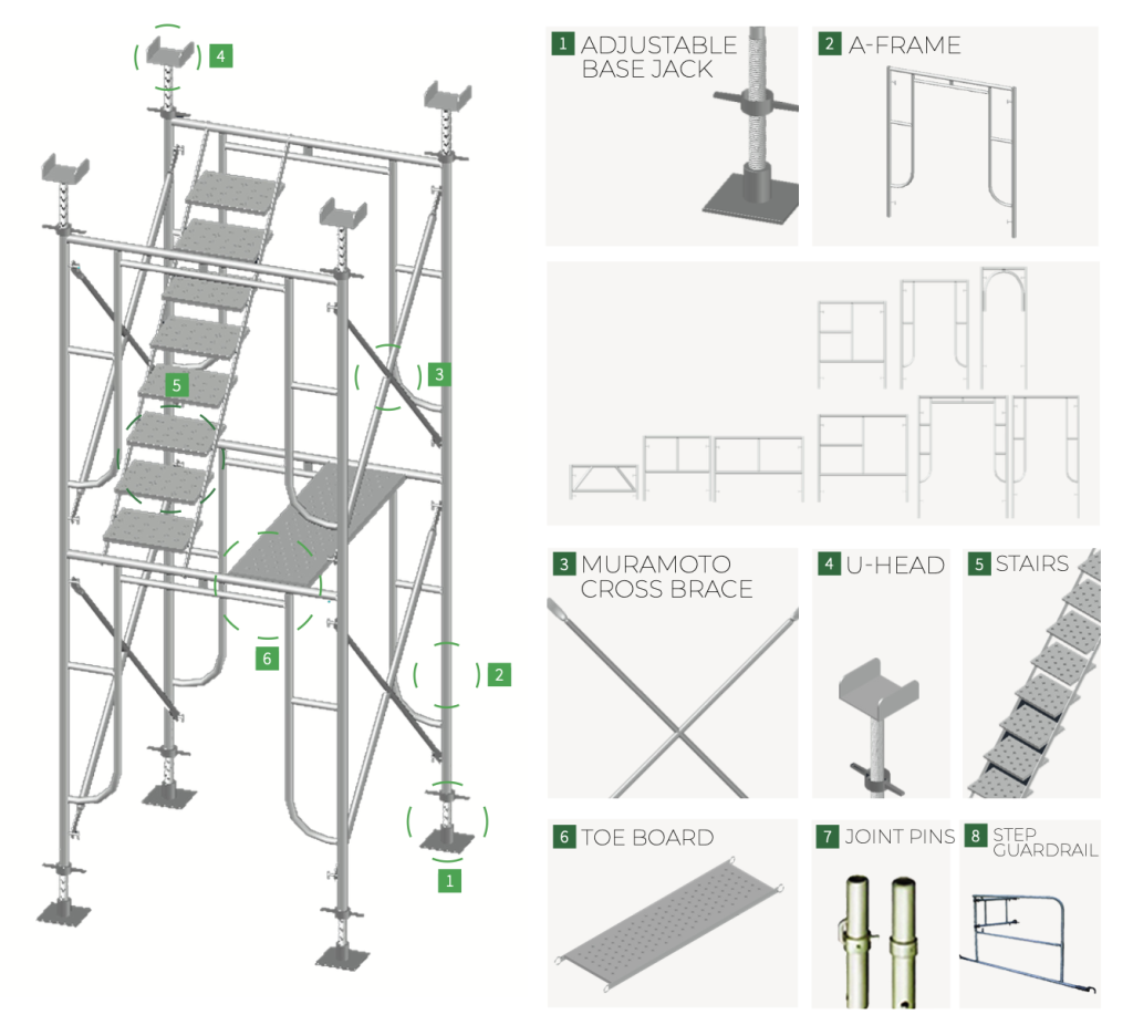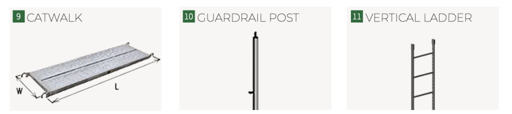 Safety-integrated ladder access, platforms, board bearers, handrails
